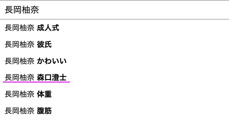 インターネット上では、長岡柚奈さんの名前を検索すると一緒に森口澄士選手の名前が検索されていることがわかります。